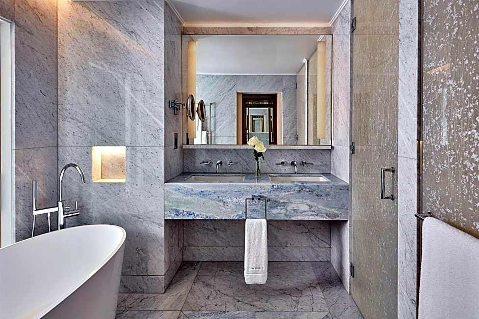 With a luxurious king-size bed and marble bathroom, these rooms also include a seating area, a flat-screen TV, DVD and CD player.