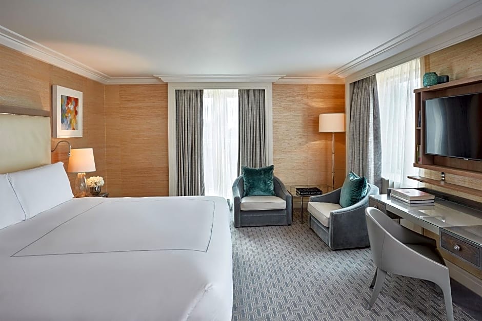 With a luxurious king-size bed and marble bathroom, these rooms also include a seating area, a flat-screen TV, DVD and CD player.